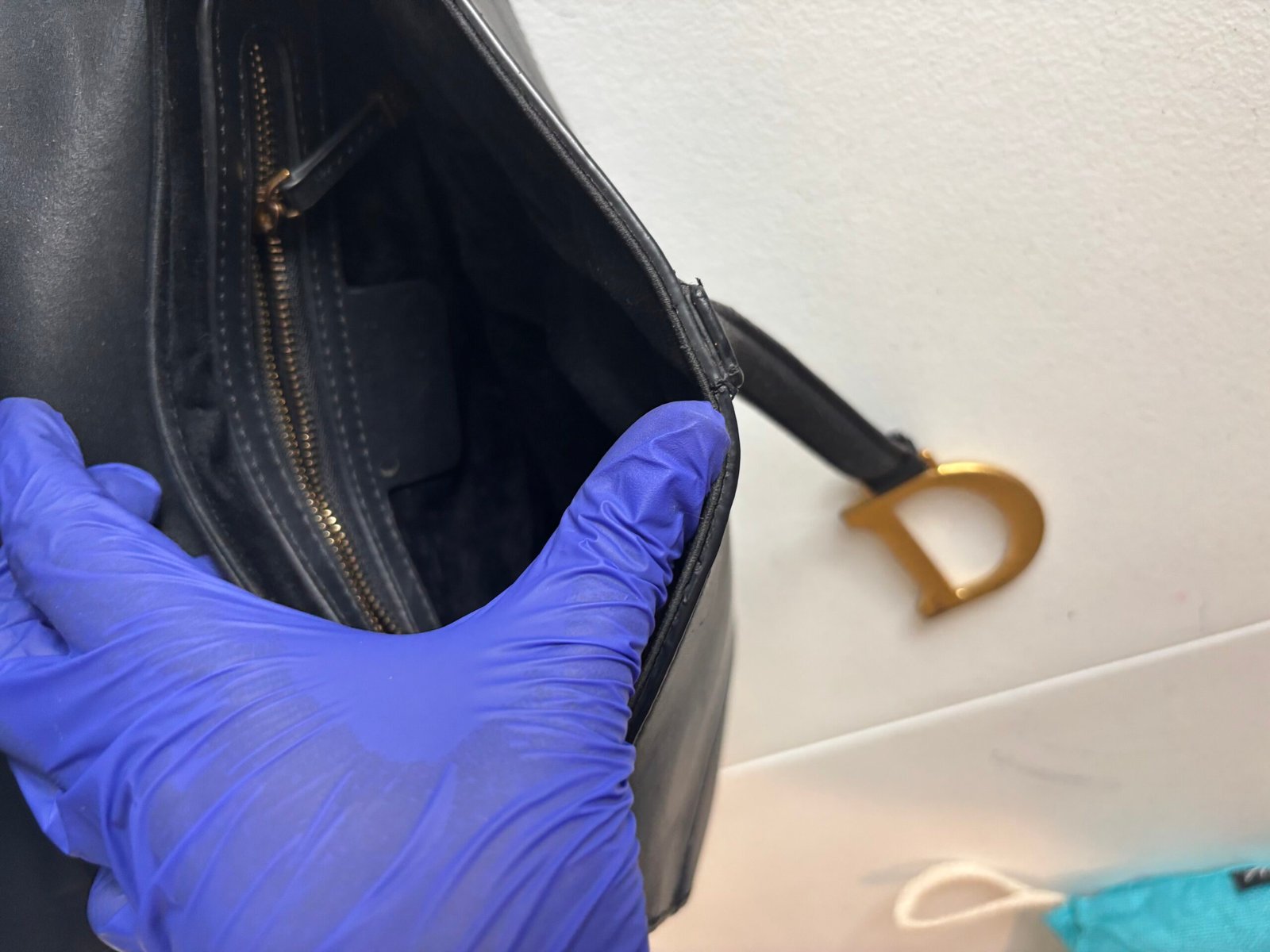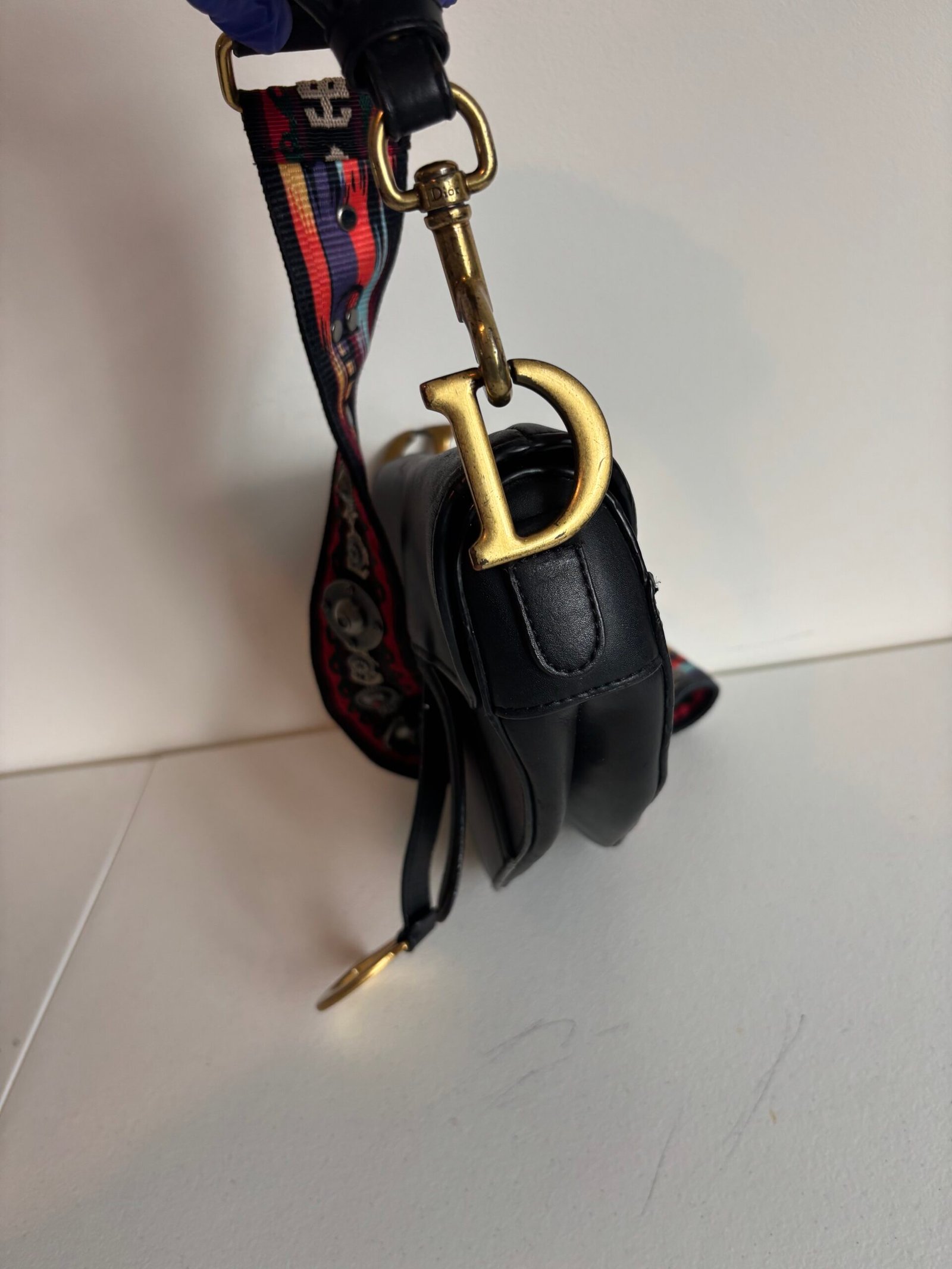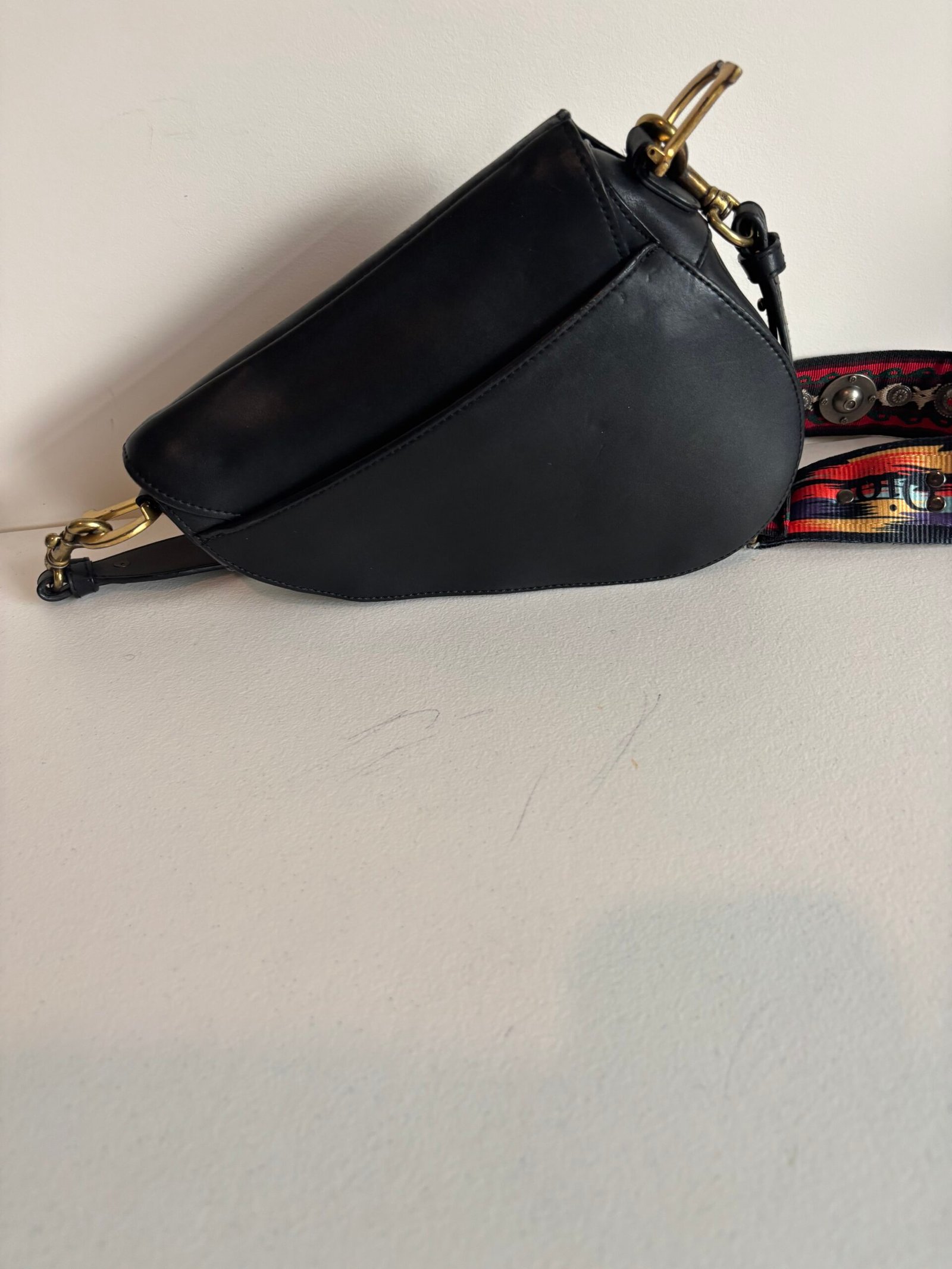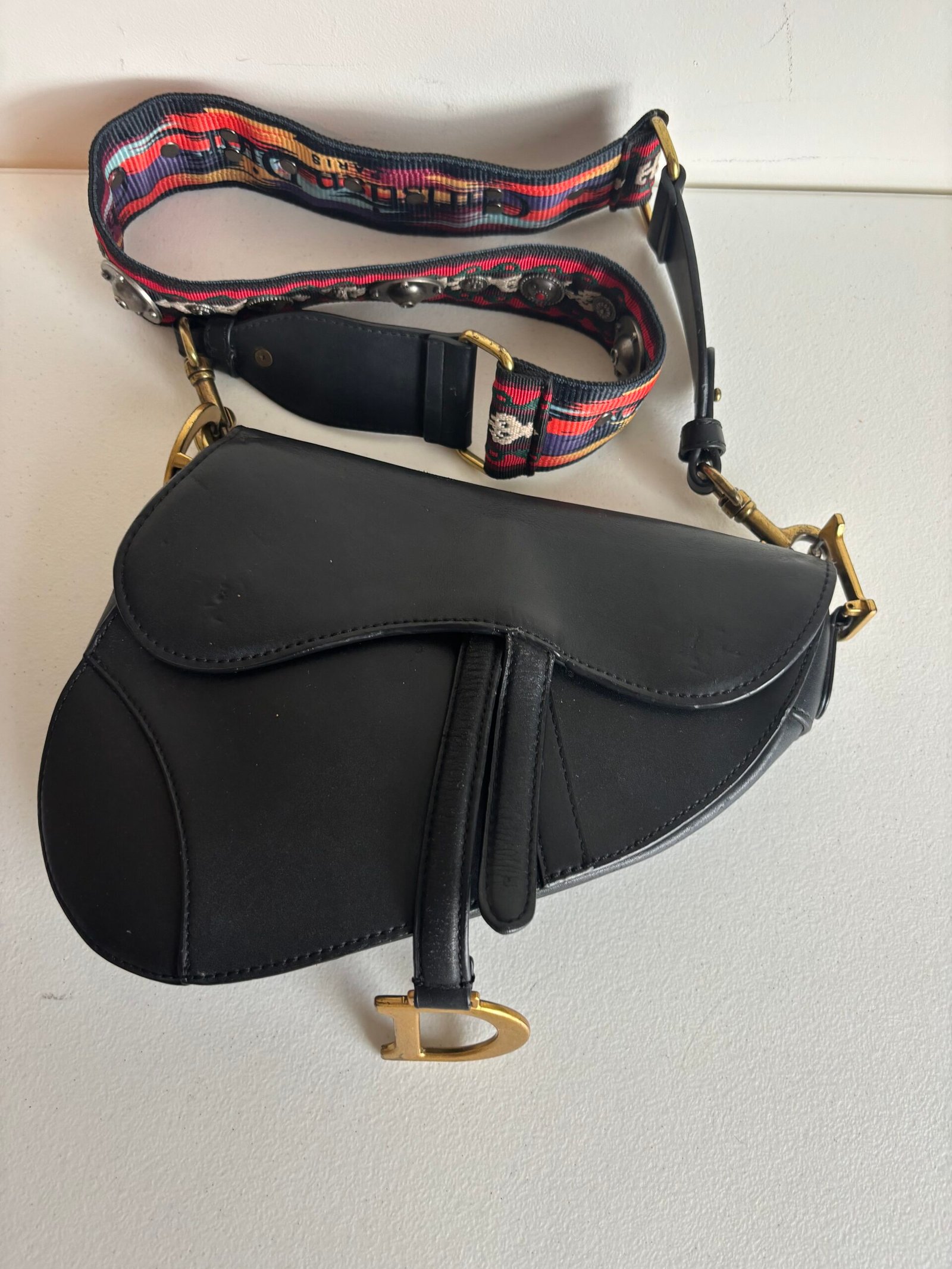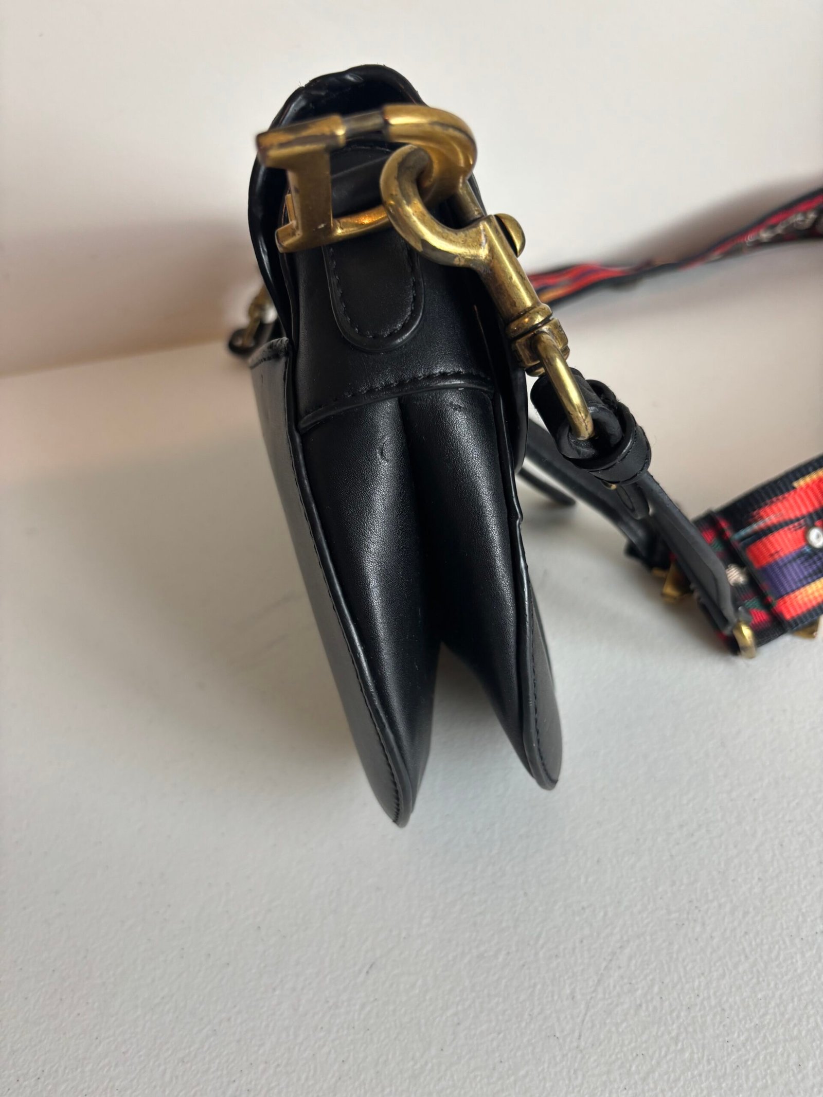 Christian Dior Saddle Grained Calfskin Leather Shoulder Bag Black